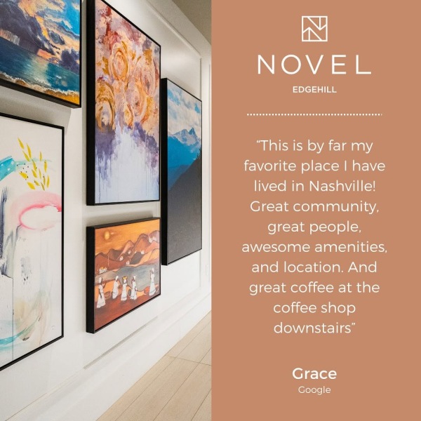 Outside your door, enjoy resident perks including a pool with lounge space, fitness center, and coworking areas. Just minutes from Music Row and downtown, NOVEL Edgehill puts you close to the best of Nashville.